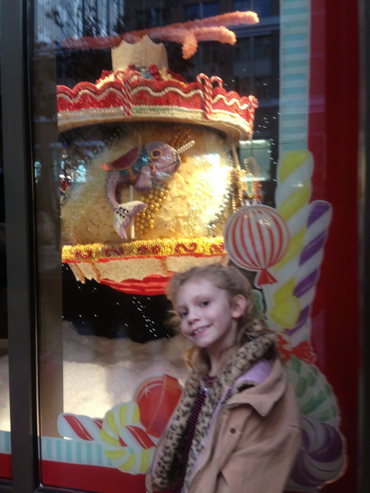 I especially enjoyed seeing the window display at Dillards. Each window featured a giant themed ornament constructed from candy. Yum!